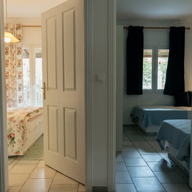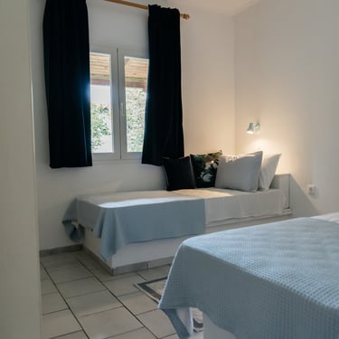 Namelyje yra du miegamieji keturiems suaugusiems. Tačiau esant poreikiui, svetainėje galima pastatyti dar dvi sulankstomas lovas, kuriose taip pat patogiai išsimiegosite. Virtuvėje yra visi reikalingiausi daiktai ir įranga maisto gamybai. Vonioje įmontuotas dušas. Apartamentuose yra ne tik wifi ryšys ir televizorius, bet ir oro kondicionierius. Kieme iš viso yra keturi, atokiau vienas nuo kito stovintys, nameliai, į kurį patenkama pro atskirą, tik šiems nameliams skirtą, įvažiavimą. Uždarame kieme rasite ne tik vietą automobiliams, bet ir jausitės jaukiai, nes netrikdys jūsų poilsio miestelio praeiviai.